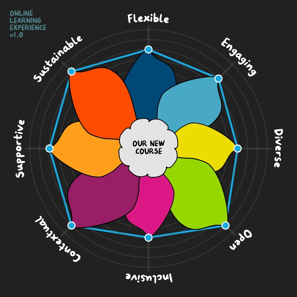 We've been busy creating a new playful remixer for the Delft University of Technology (TU Delft). Flourish - is a simple way of thinking through a course design. At TU Delft, they use a set of 8 principles to get people to discuss what type of online course they would like to create.